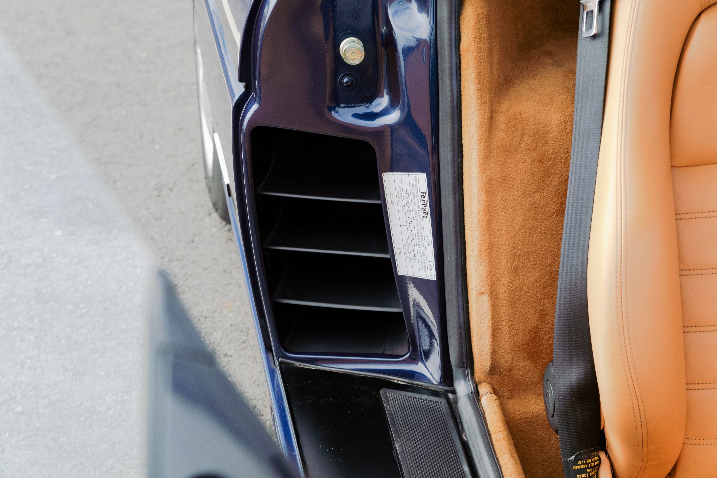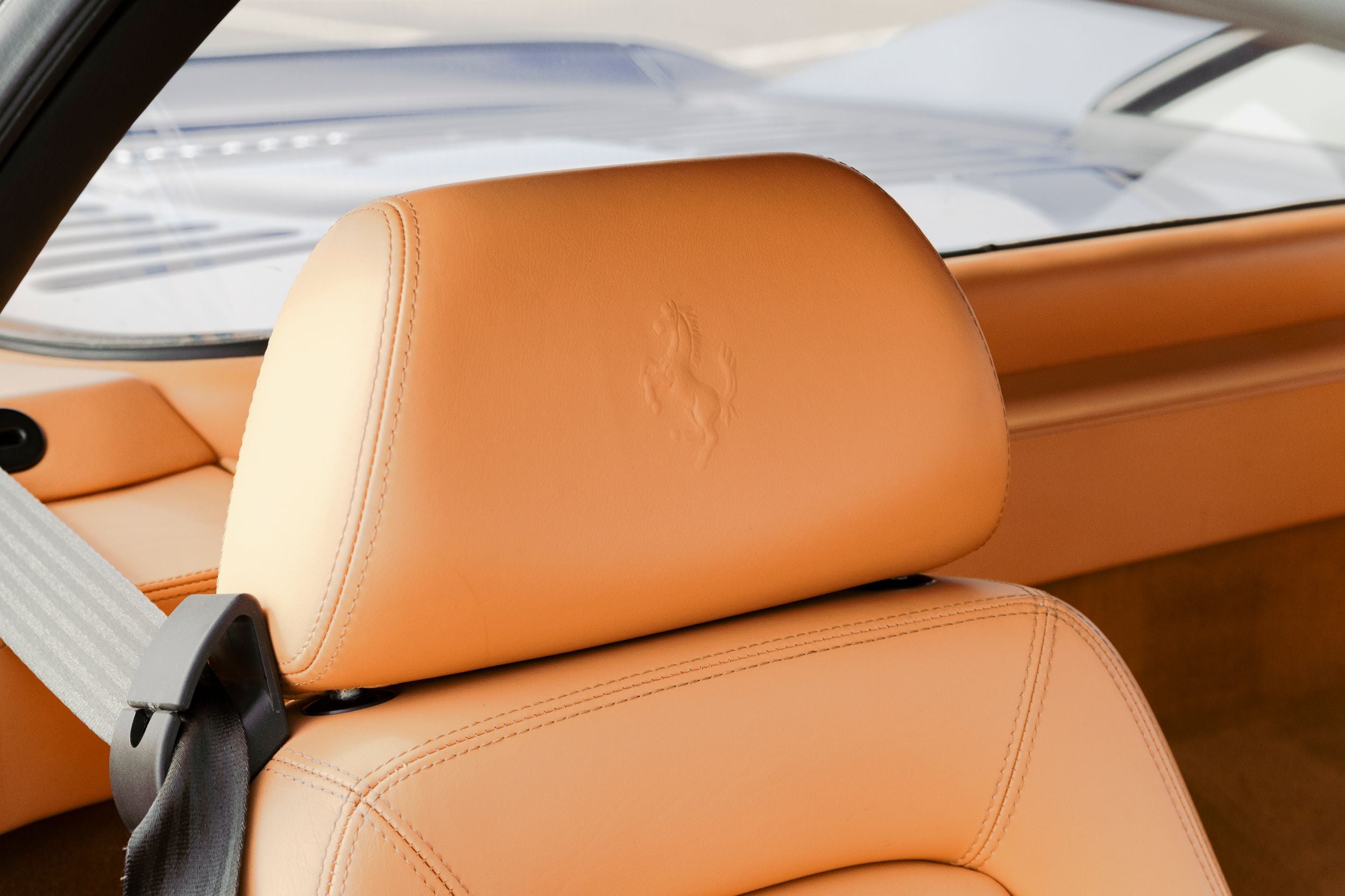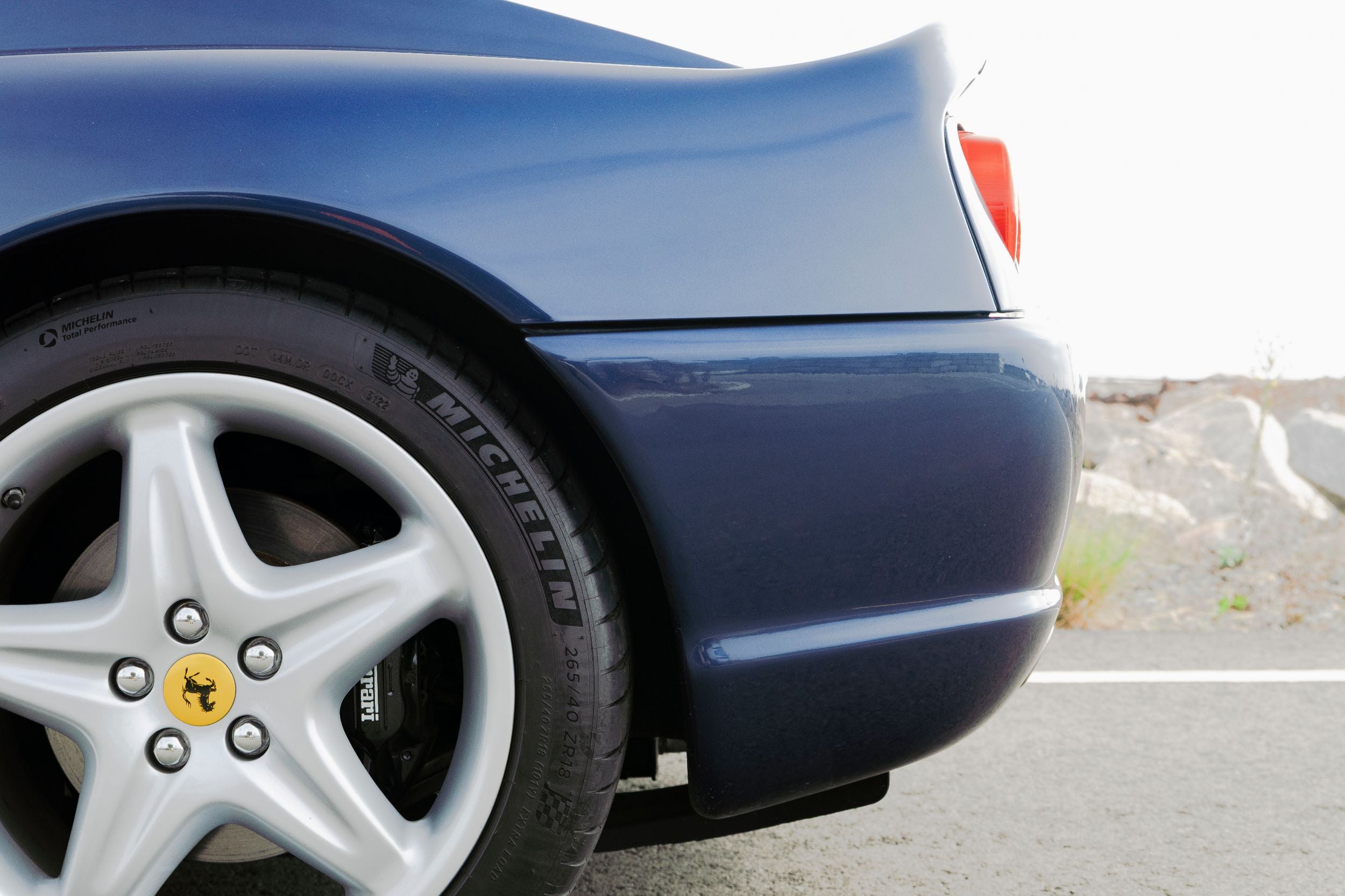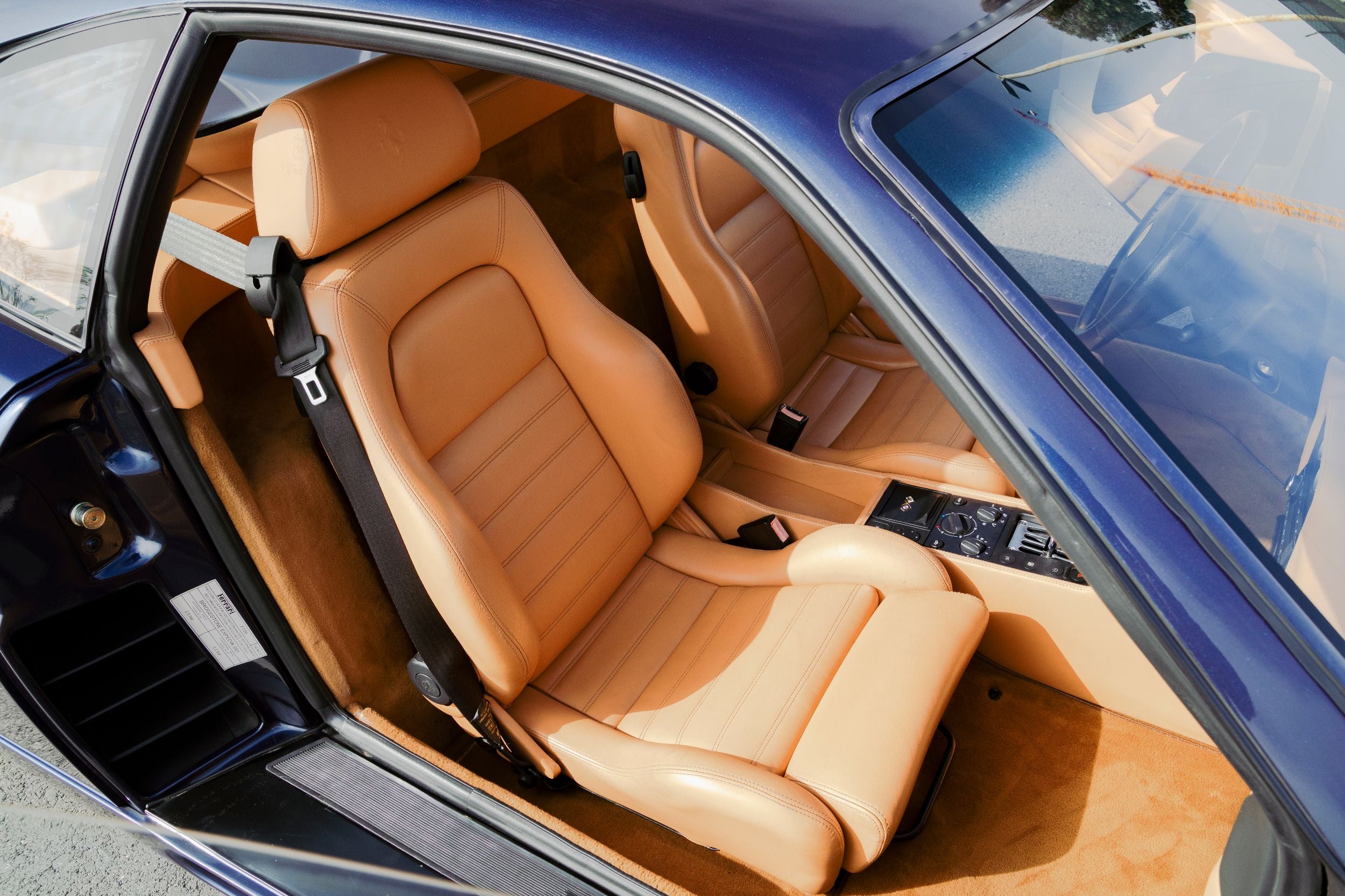 The Blu Swaters paintwork presents beautifully following a 2022 paint correction and ceramic coating, with some historical refinishing noted. The car rides on refinished 18-inch five-spoke magnesium wheels wrapped in Michelin Pilot Sport 4S tires, with Ferrari-branded calipers and ventilated discs providing confident stopping power. Inside, the cabin remains remarkably well-preserved, featuring supple Connolly leather, a gated shifter, aluminum pedals, automatic climate control, and a modern Continental Bluetooth stereo discreetly integrated for practicality. The sticky switchgear—common to this era—has been refinished, and overall presentation is excellent.