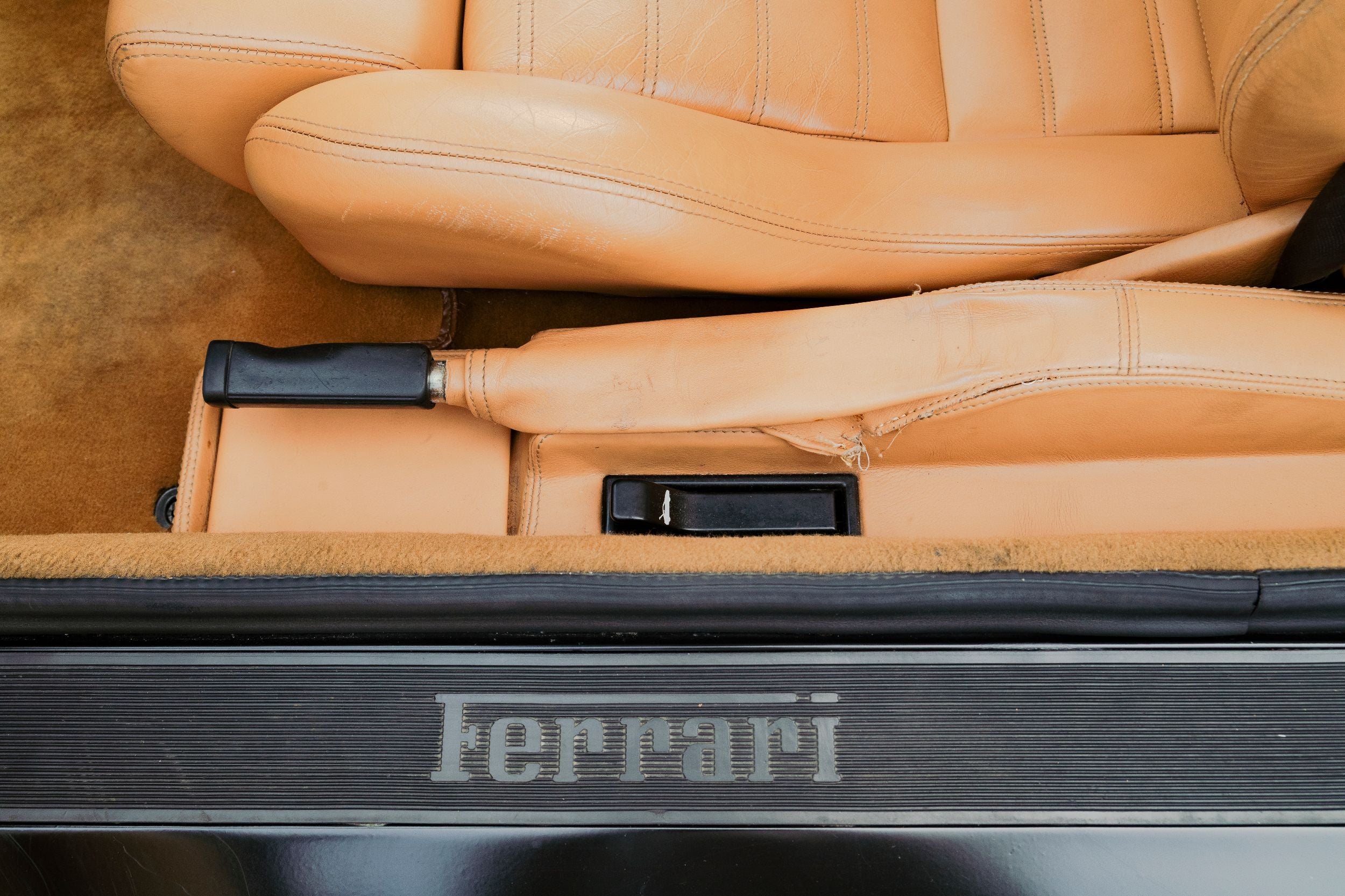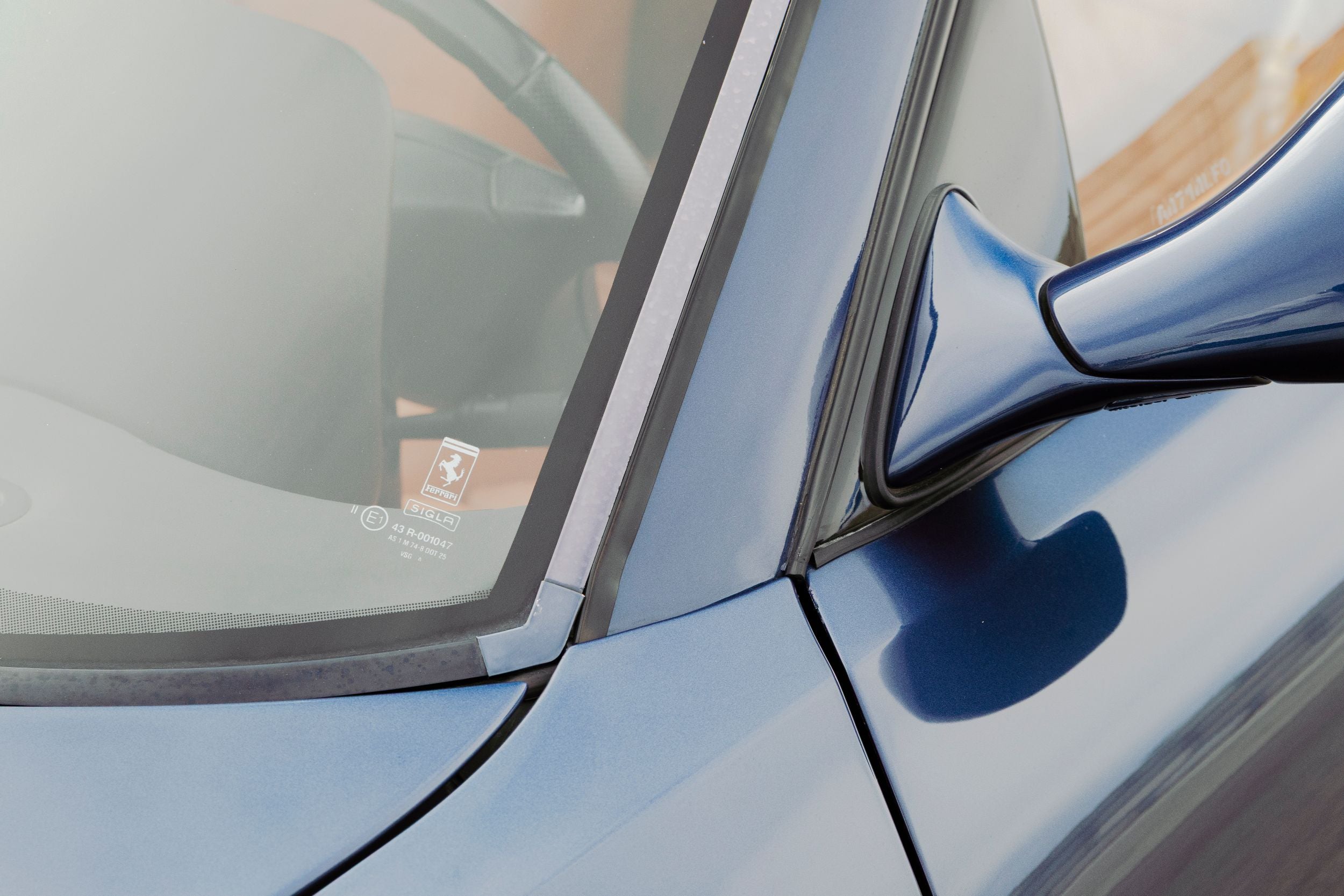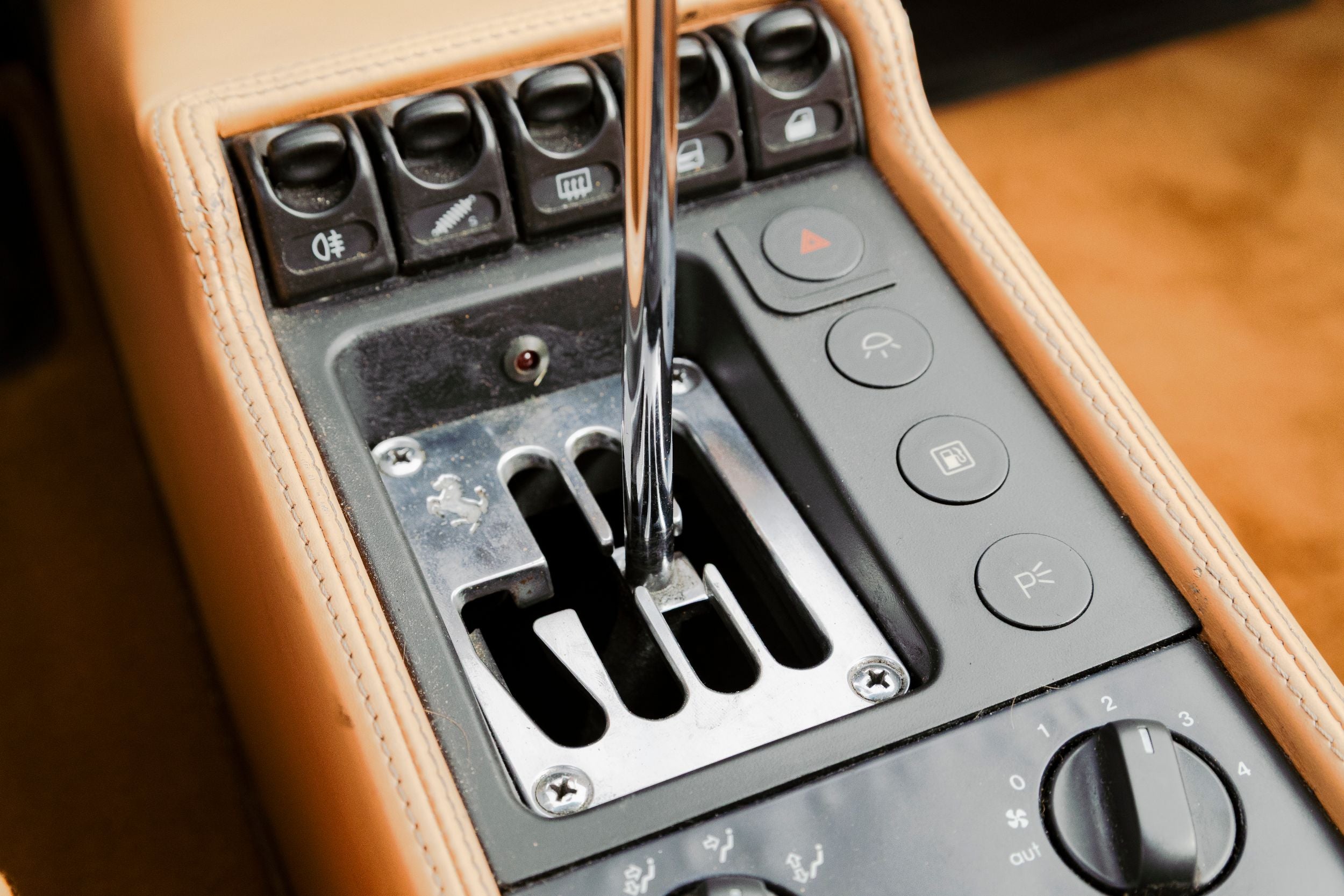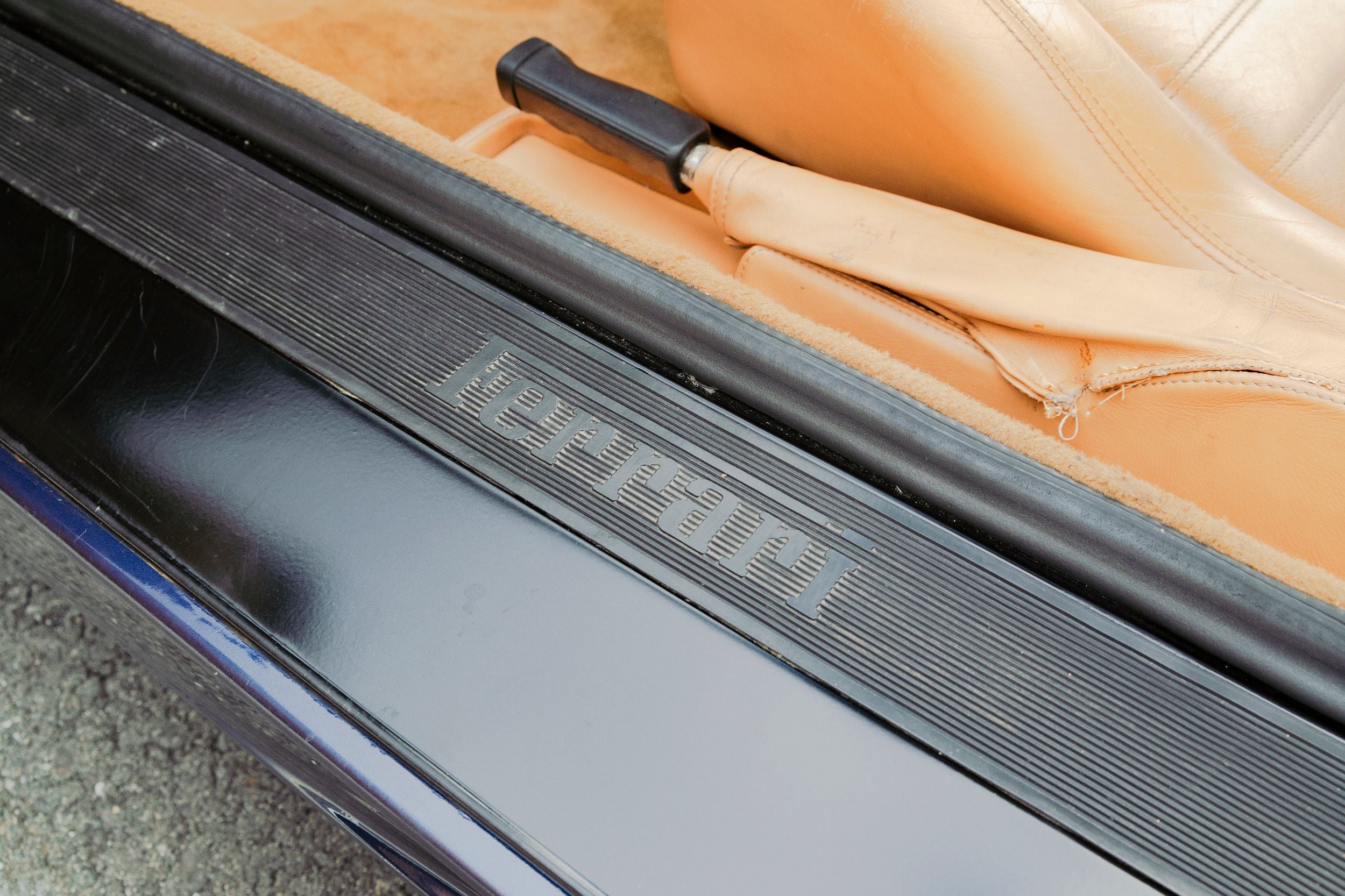 The Blu Swaters paintwork presents beautifully following a 2022 paint correction and ceramic coating, with some historical refinishing noted. The car rides on refinished 18-inch five-spoke magnesium wheels wrapped in Michelin Pilot Sport 4S tires, with Ferrari-branded calipers and ventilated discs providing confident stopping power. Inside, the cabin remains remarkably well-preserved, featuring supple Connolly leather, a gated shifter, aluminum pedals, automatic climate control, and a modern Continental Bluetooth stereo discreetly integrated for practicality. The sticky switchgear—common to this era—has been refinished, and overall presentation is excellent.