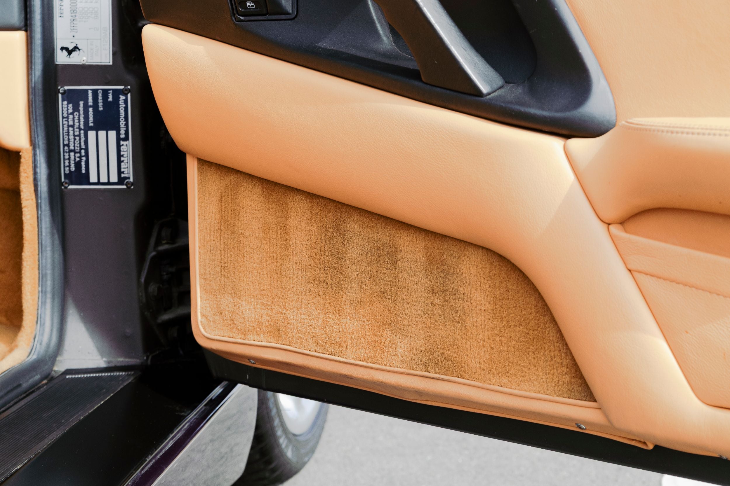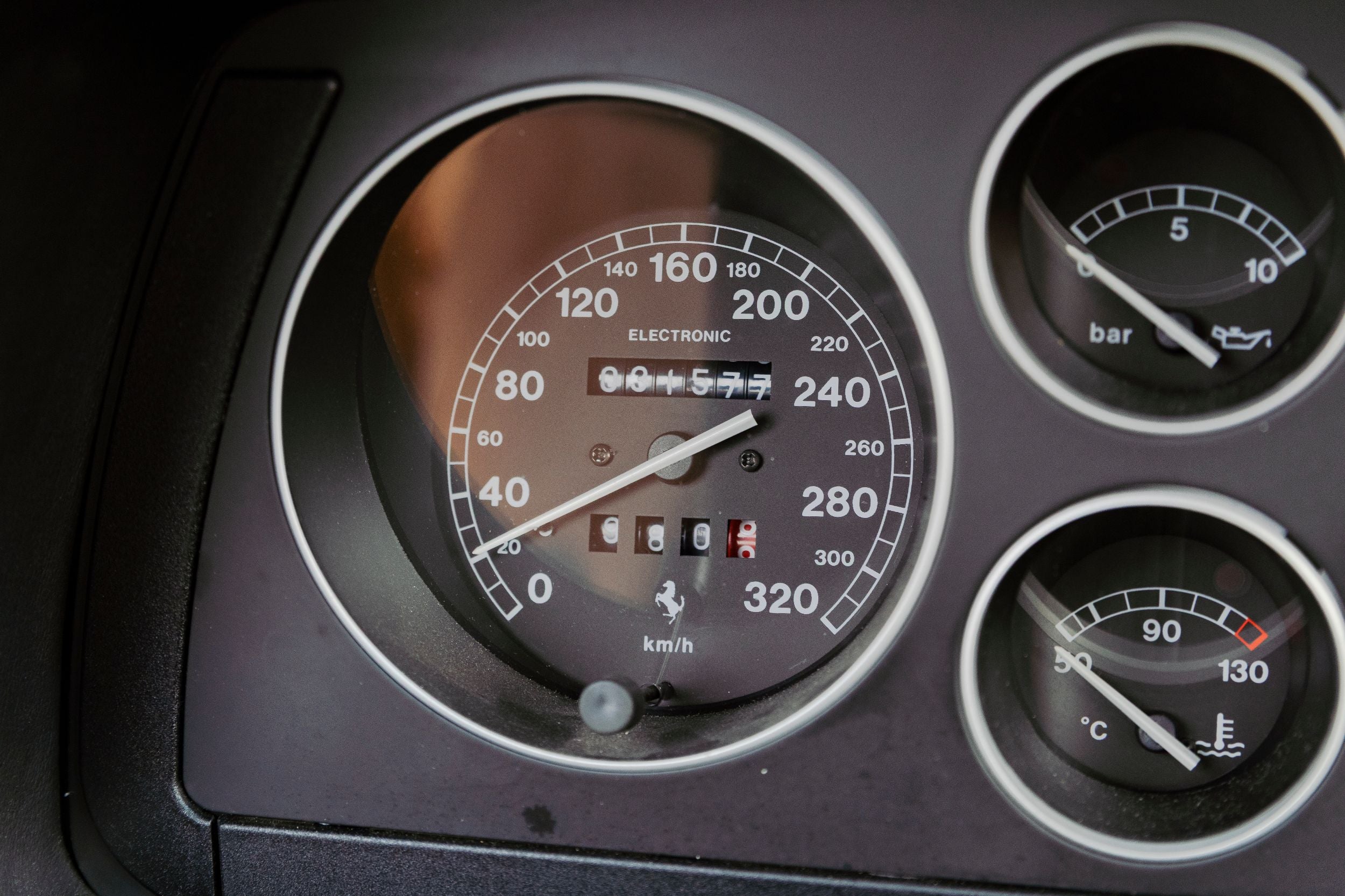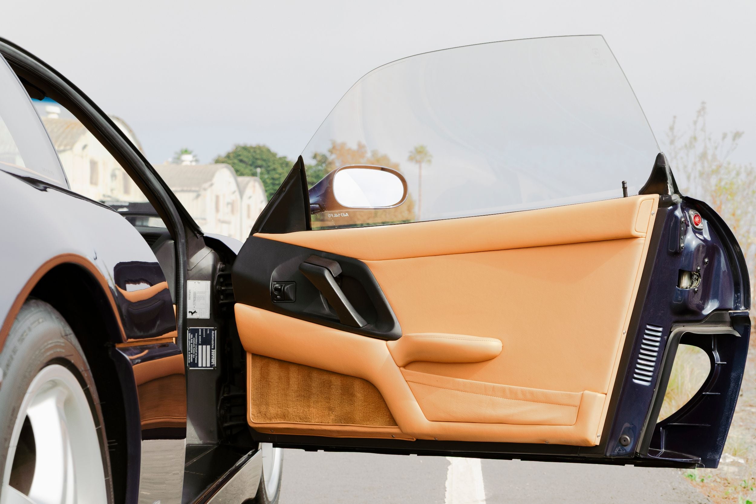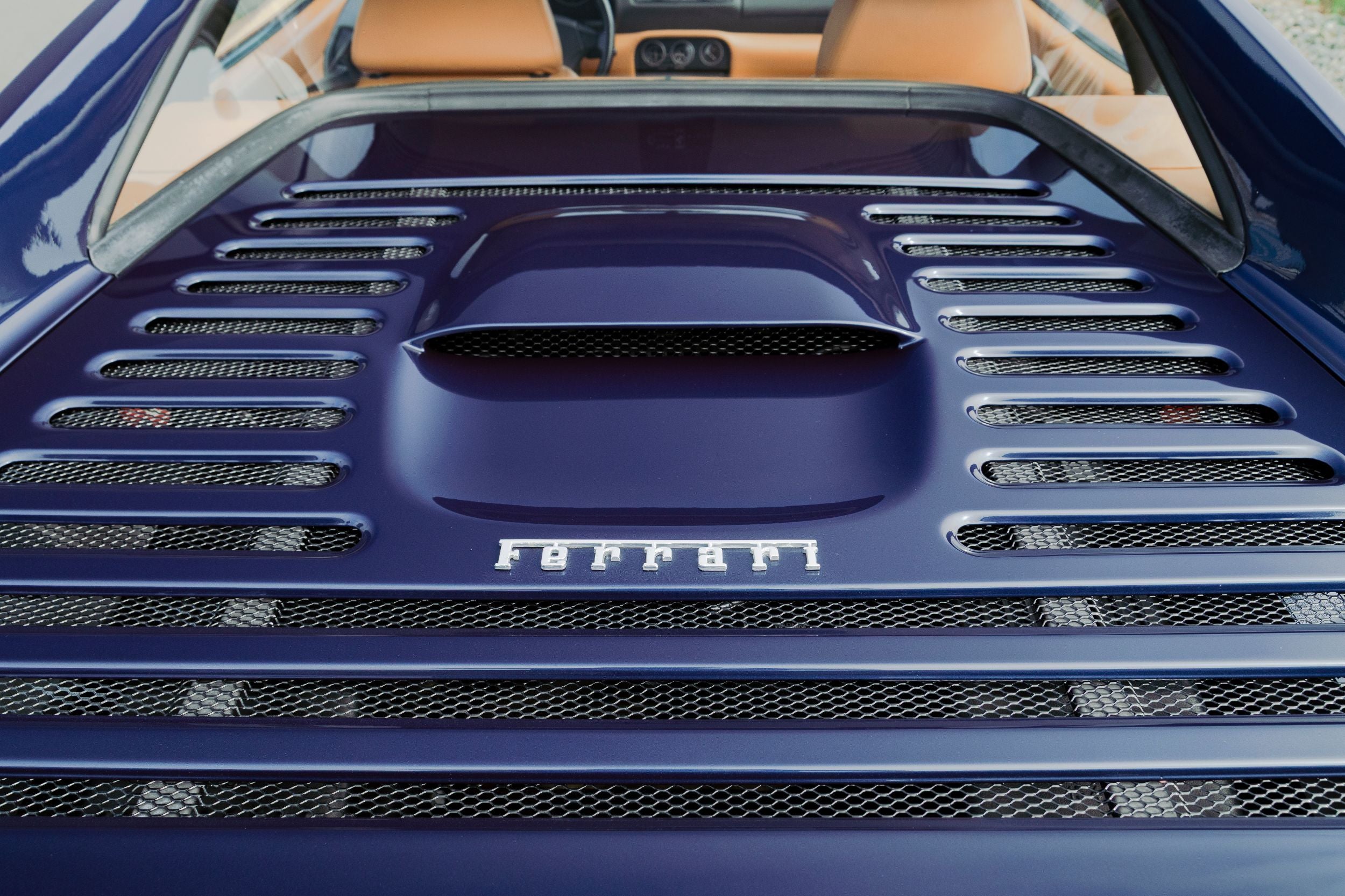 The Blu Swaters paintwork presents beautifully following a 2022 paint correction and ceramic coating, with some historical refinishing noted. The car rides on refinished 18-inch five-spoke magnesium wheels wrapped in Michelin Pilot Sport 4S tires, with Ferrari-branded calipers and ventilated discs providing confident stopping power. Inside, the cabin remains remarkably well-preserved, featuring supple Connolly leather, a gated shifter, aluminum pedals, automatic climate control, and a modern Continental Bluetooth stereo discreetly integrated for practicality. The sticky switchgear—common to this era—has been refinished, and overall presentation is excellent.