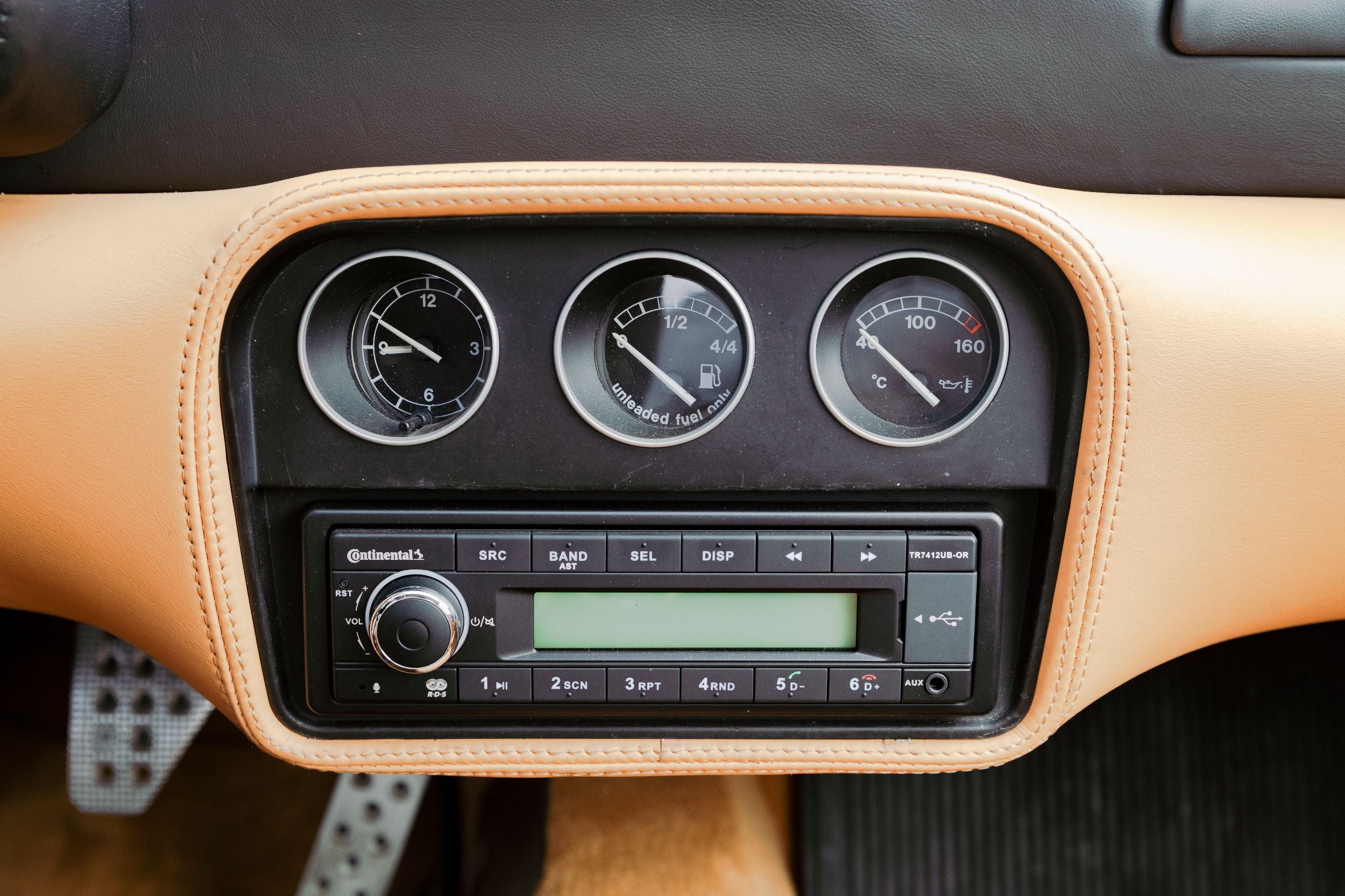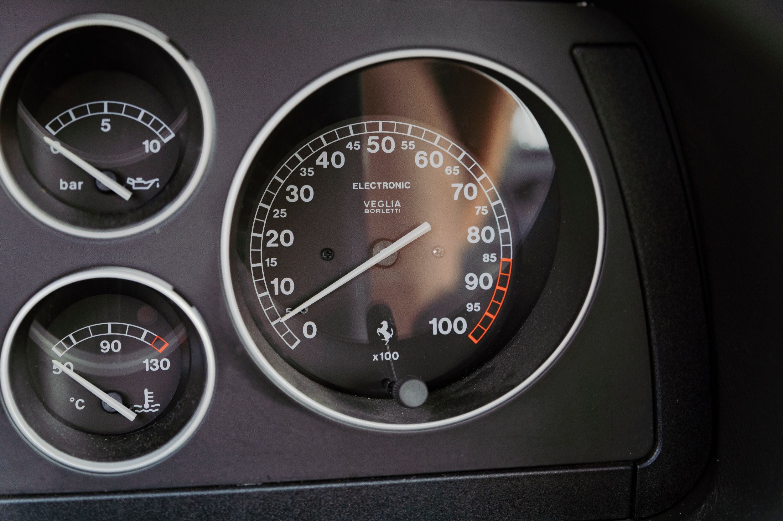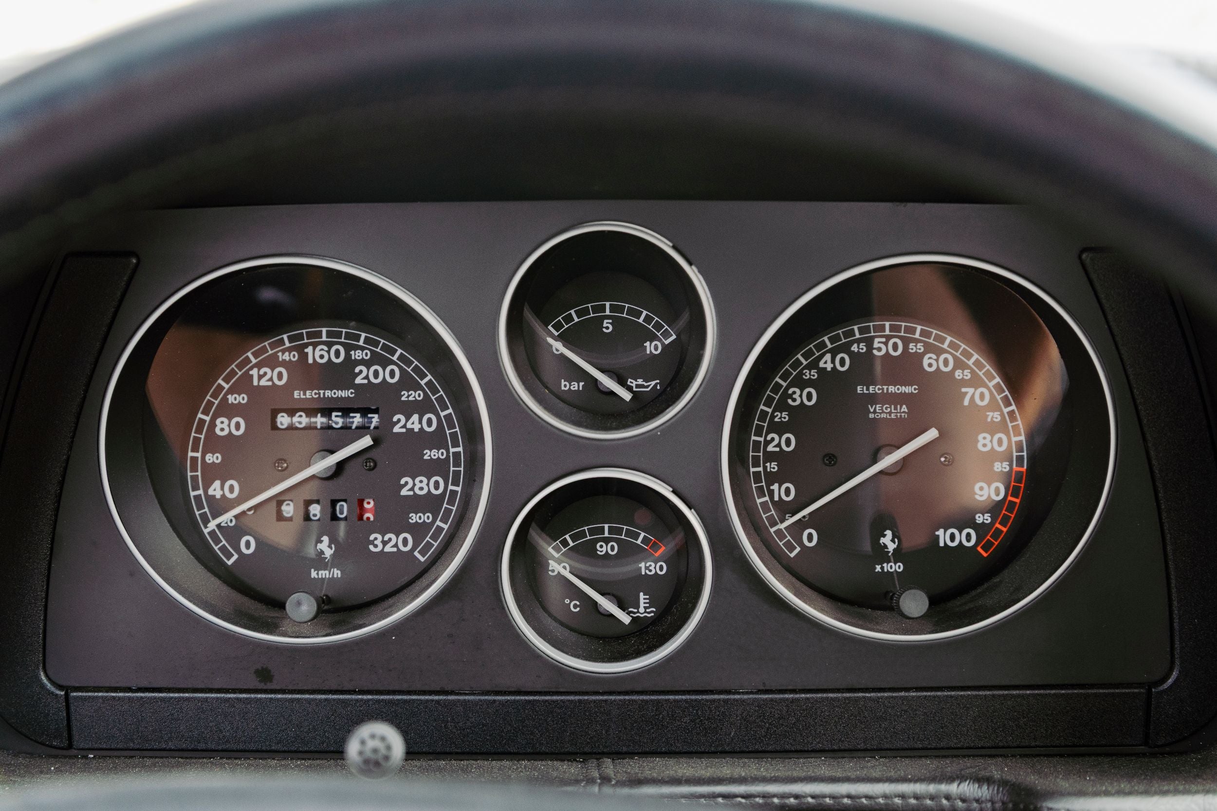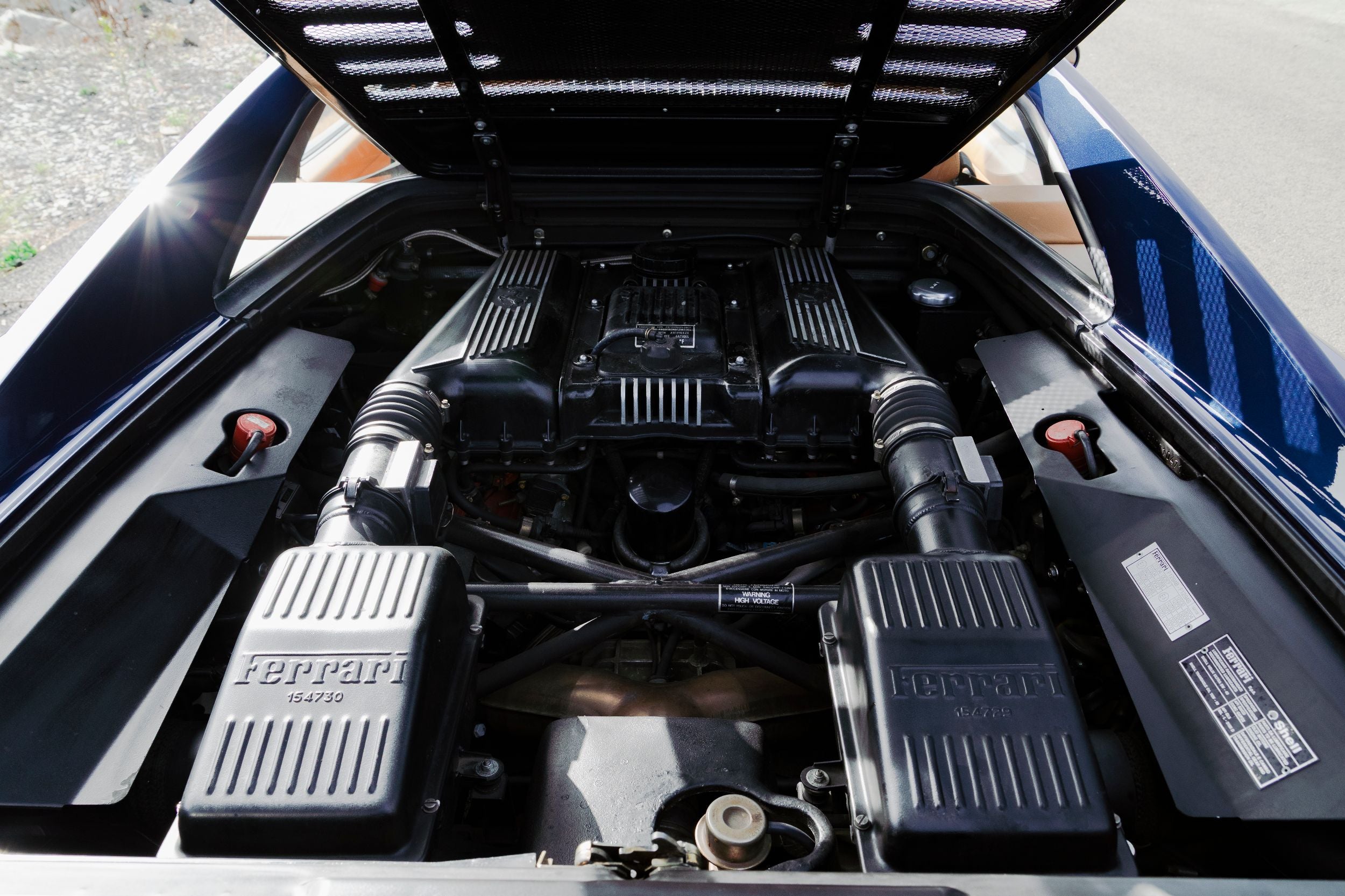 The Blu Swaters paintwork presents beautifully following a 2022 paint correction and ceramic coating, with some historical refinishing noted. The car rides on refinished 18-inch five-spoke magnesium wheels wrapped in Michelin Pilot Sport 4S tires, with Ferrari-branded calipers and ventilated discs providing confident stopping power. Inside, the cabin remains remarkably well-preserved, featuring supple Connolly leather, a gated shifter, aluminum pedals, automatic climate control, and a modern Continental Bluetooth stereo discreetly integrated for practicality. The sticky switchgear—common to this era—has been refinished, and overall presentation is excellent.